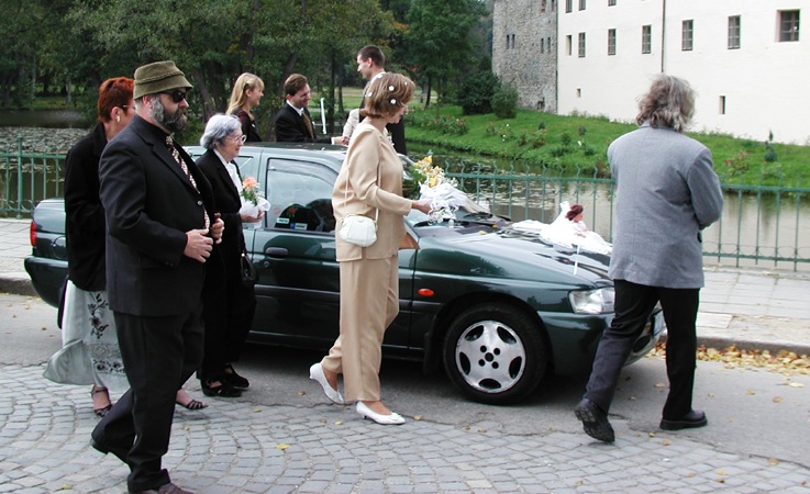 Mafiánská rodina nevěsty před autem (z rodiny zde chybí pouze zlobivý bratr) | |  |