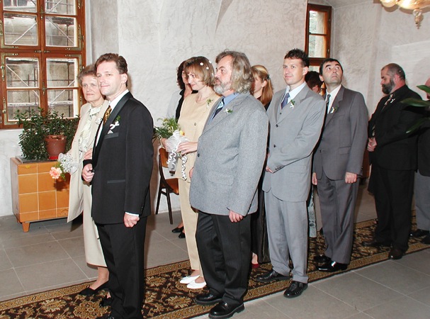 | | K1 s rodinou se chystá na obřad. Baterky ve foťáku si Kretén jeden však nevyměnil. |