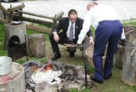 | | K15 a pantáta Fanta rozdělavájí oheň ještě před obřadem, aby se během obřadu udělal žhavý základ na pečení selátka. |